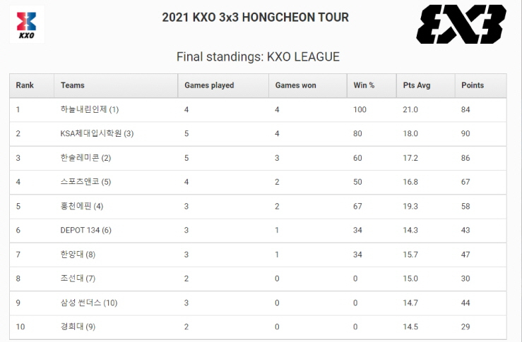 7월 3~4일 홍천에서 열린 2021 KXO 홍천 1차시리즈에서 하늘내린인제가 29연승을 달리며 국내 3x3리그 최강임을 다시한번 입증했다.