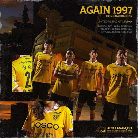 전남은 2일 1997시즌의 유니폼을 재해석한 레트로 유니폼을 출시했다. 1997시즌은 전남이 노상래, 김도근, 김태영, 마시엘 등 스타 플레이어들을 앞세워 FA컵 우승을 비롯해 라피도컵과 아디다스컵 준우승, 프로스펙스컵 3위를 거두는 등 창단 이래 최고의 성적을 거둔 해였다. 유니폼에는 FA컵 트로피와 우승일자를 기입한 패치를 부착하여 1997년 영광 재현의 의지를 담았다.