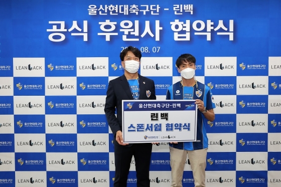 울산은 지난 7일(토) 오후 8시 문수축구경기장에서 열린 강원FC와의 하나원큐 K리그 2021 23라운드에서 린백과 스폰서십 체결식을 진행했다. 이날 행사에는 린백 김무영 대표이사와 울산 김광국 대표가 참석했다.