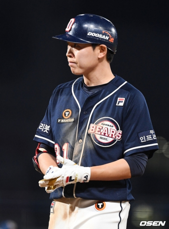 정수빈은 2020시즌을 마친 후 FA가 됐고, 두산과 6년 56억원에 계약하며 사실상 '종신 두산맨'이 됐다. 그러나 FA 첫 시즌은 올해 51경기에서 타율 0.197, 1홈런 16타점, OPS 0.573에 그치고 있다. 후반기로 한정하면 5경기에서 7타수 1안타, 타율 0.143이다. 전반기는 타율 0.200으로 마쳤는데 이마저도 깨졌다. '돈값' 소리가 나올 수밖에 없는 성적이다.
