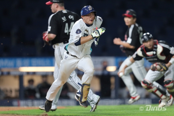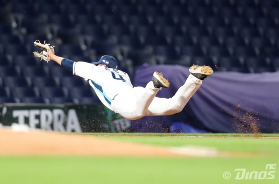 NC가 1-0으로 2회초. 1사 1,2루 위기서 LG 김재성의 강습 타구가 3루 쪽으로 향했다. 이때 최보성이 잽싸게 몸을 날려 공을 낚아챈 뒤 3루를 먼저 밟았다. 이와 동시에 1루로 레이저 송구를 시도해 더블 플레이로 연결했다. LG의 흐름이 한 번에 끊긴 순간이었다. 타구를 처리한 최보성은 NC 선발 파슨스의 축하를 받은 채 씩씩하게 더그아웃으로 뛰어갔다. 동료들은 목청껏 소리를 지르며 그를 맞이했다.