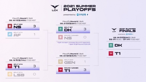 '리그 오브 레전드(LoL)' e스포츠의 한국 프로리그를 주최하는 리그 오브 레전드 챔피언스 코리아(LCK)는 2021 LCK 서머 플레이오프 1라운드와 2라운드에서 담원 기아와 T1이 살아남으면서 오는 28일 열리는 결승전에서 대결한다고 23일 밝혔다.