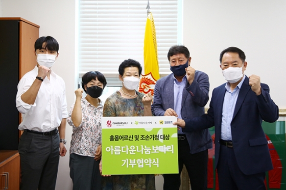 광주는 지난 25일 광주축구전용구장 사무처에서 조인마켓 김용성 매니저, 아름다운가게 광주목포본부 강영희 공동대표, 광주FC 최만희 대표이사 등이 참석한 가운데 소외계층을 위한 기부 협약식을 가졌다고 밝혔다.
