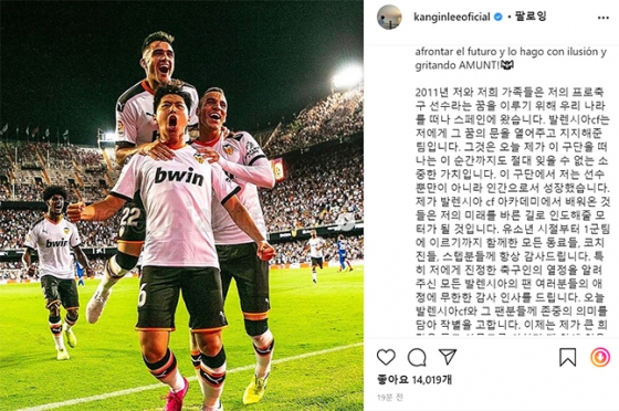 이강인은 SNS에 "2011년 저와 가족들은 프로축구 선수라는 꿈을 이루기 위해 스페인에 왔다. 발렌시아는 저에게 그 꿈의 문을 열어주고 지지해준 팀"이라며 "오늘 구단을 떠나는 이 순간까지도 절대 잊을 수 없는 소중한 가치"라고 적었다.
