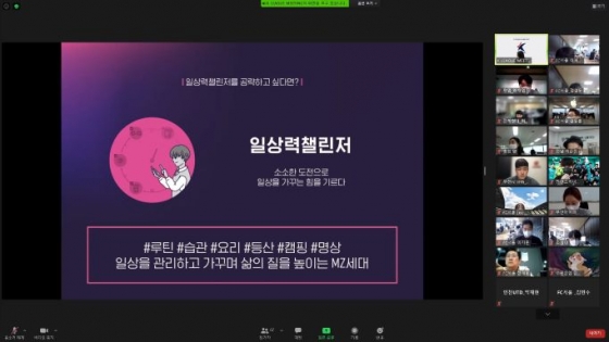 먼저 첫 번째 강의는 대학내일 20대연구소 책임연구원 이재흔 파트장이 ‘2021 밀레니얼-Z세대 트렌드 키워드’를 주제로, ▲인플루언서블 세대의 가치관 및 라이프스타일 ‘일상력 챌린저’, ▲ ‘컨셉친’으로 보는 관계 및 콘텐츠, ▲세컨슈머 소비, ▲선한 오지랖 사회참여 등을 소개했다.