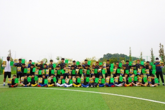 충남아산FC는 축구 훈련일지뿐만 아니라 구단 머플러 등 구단 상품도 함께 전달해 유소년 선수들의 뜨거운 반응을 이끌어냈다.