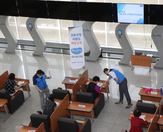 미사리경정장에서 이용고객들을 대상으로 도박중독 예방교육을 진행하고 있다