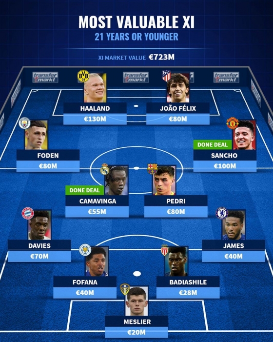 유럽 축구 통계 매체 ‘트랜스퍼마크트’는 14일(한국시간) 전 세계 만 21세 선수만으로 베스트 11을 구성했다.
