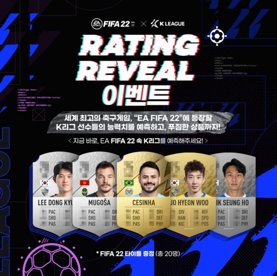 이번 이벤트는 오는 10월 'FIFA22' 게임 발매를 기념하여 연맹과 EA가 공동진행하는 프로모션이다. K리그 선수들의 게임 내 능력치를 맞춰보며 'FIFA22' 공식 출시에 앞서 축구 팬들의 관심과 흥미를 돋우기 위한 이벤트다.