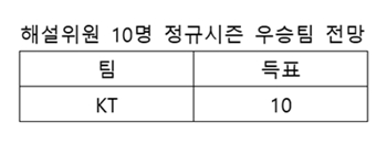 프로야구 해설위원들이 꼽은 정규시즌 우승팀은 단연 KT 위즈였다.