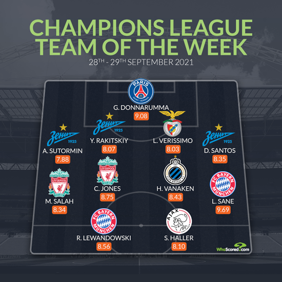 축구 통계 매체 ‘후스코어드’는 30일(한국 시간) 유럽축구연맹(UEFA) 챔피언스리그(UCL) ‘이주의 팀’을 공개했다.