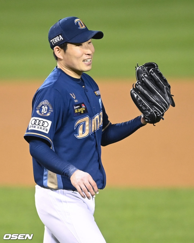 위험한 순간도 있었다. 6회까지 노히트 노런 행진을 이어가다 7회 박건우에게 안타를 맞았다. 흐름이 끊어질 수도 있는 부분. 손민한 코치가 올라와 이재학을 다독였다. 이후 9회까지 추가 피안타 없이 두산 타선을 제어했다.
