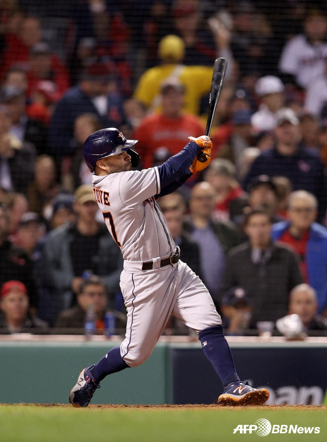 휴스턴 애스트로스가 9회 2사 후 무려 7점을 뽑아내는 빅이닝을 만들며 보스턴 레드삭스와 챔피언십 시리즈 전적을 2승 2패로 맞췄다. '작은 거인' 호세 알투베(31)는 또 한 번 홈런으로 휴스턴을 위기에서 구해냈다.