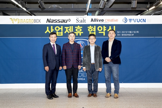 올리브 크리에이티브(대표이사 정의석), 중앙 UCN(대표이사 김영승), PSG 아카데미 코리아 주관 운영사 미라그로박스(대표이사 J.킹 로이), 낫소(회장 주은형), 스포츠 얼터너티브 솔트(대표이사 유현정)가 대한민국 축구의 미래를 위해 5자 업무 협약(MOU)을 체결했다.