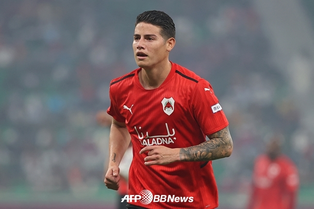 하메스는 31일(한국시간) 카타르 그랜드 하마드 스타디움에서 열린 알아라비전에 선발 출전해 후반 추가 시간에 퇴장을 당했다.