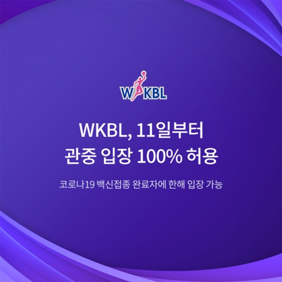 WKBL(한국여자농구연맹)은 정부의 단계적 일상회복 방역 지침에 따라 2라운드가 시작되는 11일 삼성생명과 KB스타즈의 용인 경기부터 관중 입장을 허용한다고 4일 밝혔다.