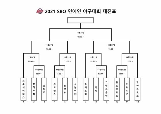 사단법인 한국연예인야구협회(SBO)가 주최하고 SBO와 한스타미디어가 주관하는 2021 SBO 연예인 야구대회가 오는 14일부터 28일까지 경기도 고양시 덕양구 농협대 야구장에서 열린다.