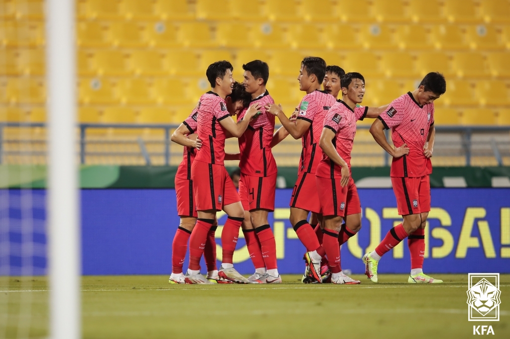 파울루 벤투 감독이 이끄는 대한민국 축구대표팀은 17일 0시(한국 시간) 카타르 도하에 위치한 타니 빈 자심 스타디움에서 열린 2022 국제축구연맹(FIFA) 카타르 월드컵 아시아 지역 최종예선 A조 6차전에서 이라크를 3-0으로 완파했다. 조 2위 한국(승점 14)은 3위 아랍에미리트(승점 6)와 격차를 벌리며 카타르행에 청신호를 켰다.