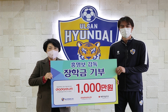 26일 울산 구단에 따르면 홍 감독은 전날 울산 클럽하우스에서 이정희 다다름 대표를 만나 장학금을 전달했다.