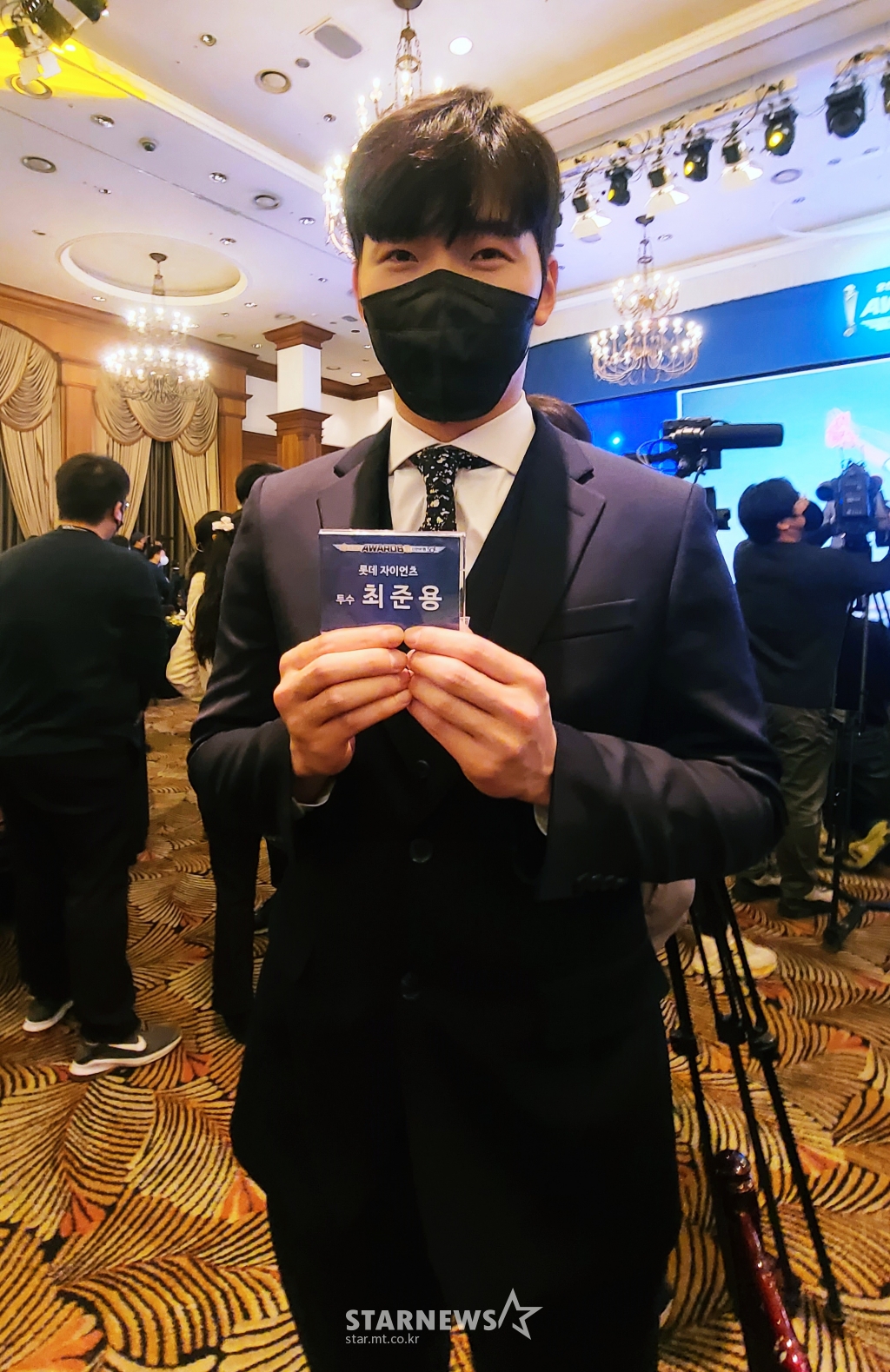 최준용은 29일 서울 강남구의 임피리얼 팰리스 호텔에서 열린 2021 KBO 시상식에서 KIA 타이거즈 투수 이의리(19)와 접전을 벌였지만 결국 고배를 마시고 말았다.