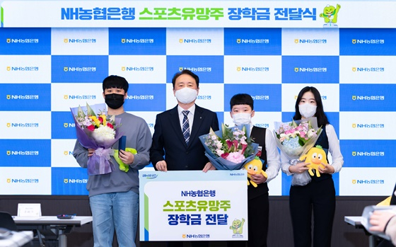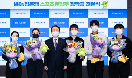 NH농협은행은 지난 달 29일 서울시 중구 충정로 본사에서 열린 스포츠 유망주 장학금 전달식에서 테니스(3명), 소프트테니스(4명), 씨름(8명), 골프(5명), 당구(3명) 등 5종목 23명의 유망주에게 총 6000만원의 장학금을 전달했다. 이번 행사는 어려운 환경 속에서 훈련하는 스포츠 유망주들이 훌륭한 인재로 성장할 수 있도록 돕기 위해 마련됐다.