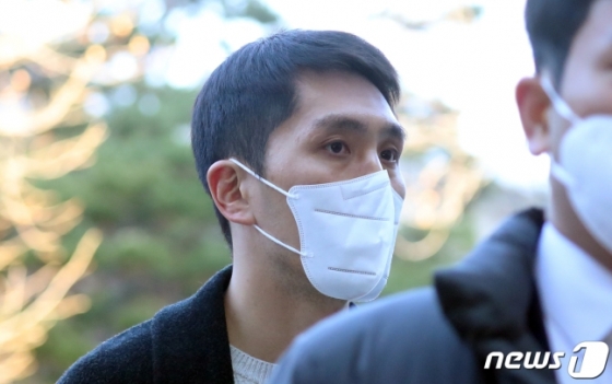 후배를 폭행해 상해를 입힌 혐의로 기소된 전 프로농구 선수 기승호가 2일 서울 서초구 서울중앙지방법원에서 열린 공판에 출석하고 있다. /사진=뉴스1