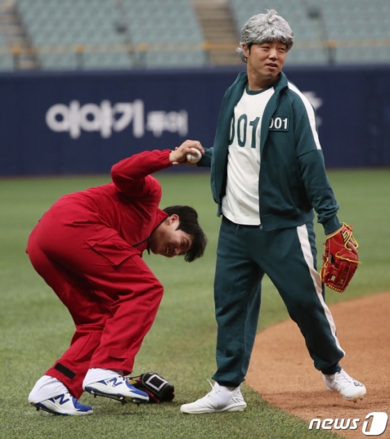 메인 테마는 '오징어 게임'이었다. 김민수는 깐부 할아버지 '오일남' 분장 그대로 나왔다. 왼쪽 가슴에 '001'이 박힌 녹색 트레이닝 복에 흰 가발을 썼다. 시작부터 끝까지 유지했다. 2019년 가오나시 분장으로 센세이션을 일으키며 MVP에 올랐고, 이번에도 기대를 저버리지 않았다.
