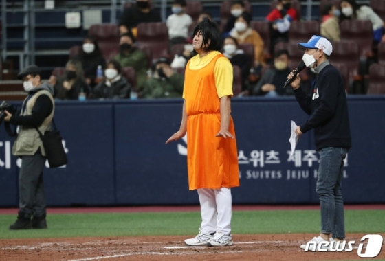4회 종료 후 '무궁화 꽃이 피었습니다'가 진행됐다. '양신' 양준혁이 인형으로 분했고, 원태인이 물총을 들었다. 관중들은 일제히 스마트폰을 꺼내 해당 장면을 영상으로 담기 바빴다.