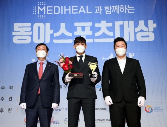 국내 5대 프로스포츠 종목을 대표하는 선수들이 직접 올해 최고의 스타를 뽑는 '메디힐과 함께 하는 2021 동아스포츠대상' 시상식이 6일 서울 중구 소공동 롯데호텔서울 2층 크리스탈볼룸에서 열렸다.