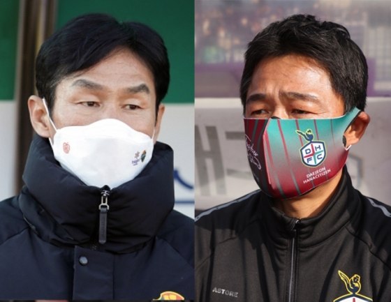 최용수(왼쪽) 강원FC 감독과 이민성 대전하나시티즌 감독. /사진=한국프로축구연맹