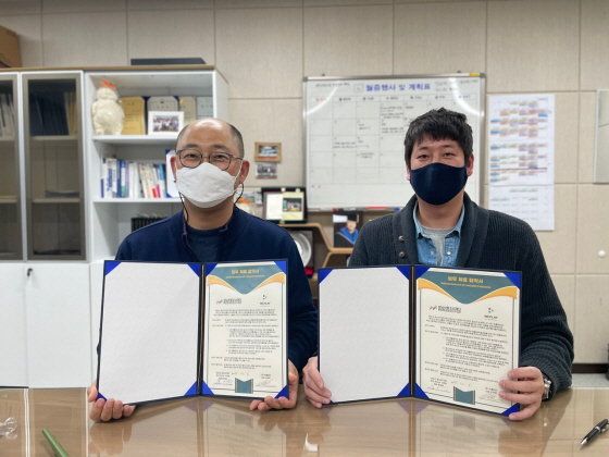 판교 청소년 수련관 윤여원 관장(왼쪽)과 위플레이 이재혁 대표이사/사진제공=위플레이