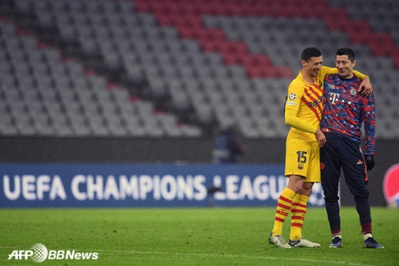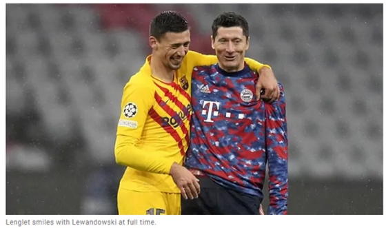 9일(한국시간) 마르카 등 스페인 언론들에 따르면 랑글레는 9일 오전 5시(한국시간) 독일 뮌헨 알리안츠 아레나에서 열린 바이에른 뮌헨과의 2021~2022 챔스 조별리그 E조 최종전이 끝난 뒤 그라운드 위에서 로베르트 레반도프스키와 활짝 웃으며 대화를 나눴다.