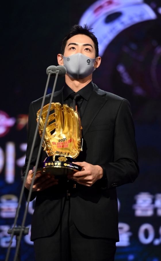 지난 10일 열린 2021 KBO리그 골든글러브 시상식 직후 만난 구자욱은 "아직 정말 꿈 같다. 감격에 눈시울이 붉어졌다"고 소감을 밝혔다.