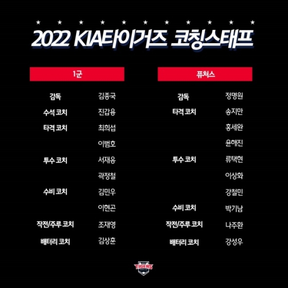 KIA 타이거즈가 2022시즌을 이끌어 갈 코칭스태프 보직을 확정했다.