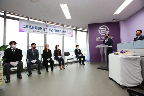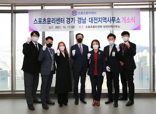 스포츠윤리센터는 지난 17일 대전 등 3곳에 스포츠윤리센터 지역사무소 개소식을 열고 본격적으로 업무를 시작했다고 밝혔다. 대전지역사무소에서 열린 개소식에는 이은정 스포츠윤리센터 이사장과 유병채 문화체육관광부 체육국장, 안상미 쇼트트랙 해설위원 등이 참석했다.
