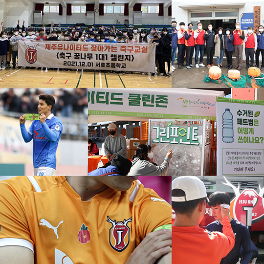 제주도 유일의 프로구단인 제주는 그동안 지역 문제 해결을 통한 지역 사회 공헌에 힘써왔다. 특히 지난해 10월부터 JDC(제주국제자유도시개발센터) 및 제주도와 함께 제주도내 늘어나는 플라스틱 문제 해결과 친환경 제품 사용 문화 장려를 위해 ‘No플라스틱 서포터즈 사업'을 진행하고 있다.