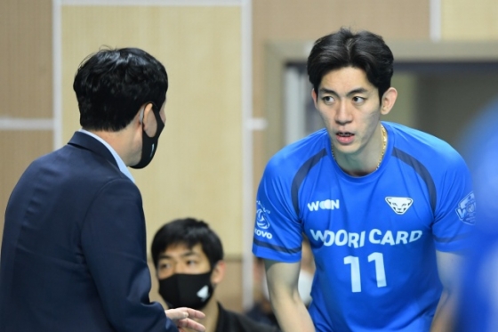 이적 후 첫 경기부터 선발을 자청한 '201㎝ 이적생' 김재휘(28·우리카드)가 셧아웃 승리를 끌어냈다. 하지만 신영철(57) 우리카드 감독은 김재휘가 더 나은 모습을 보일 것으로 기대했다.