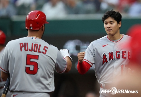 앨버트 푸홀스(왼쪽)와 오타니 쇼헤이./AFPBBNews=뉴스1