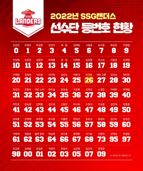 SSG 랜더스(이하 SSG)가 6일 2022 시즌 선수단 등번호를 확정했다.
