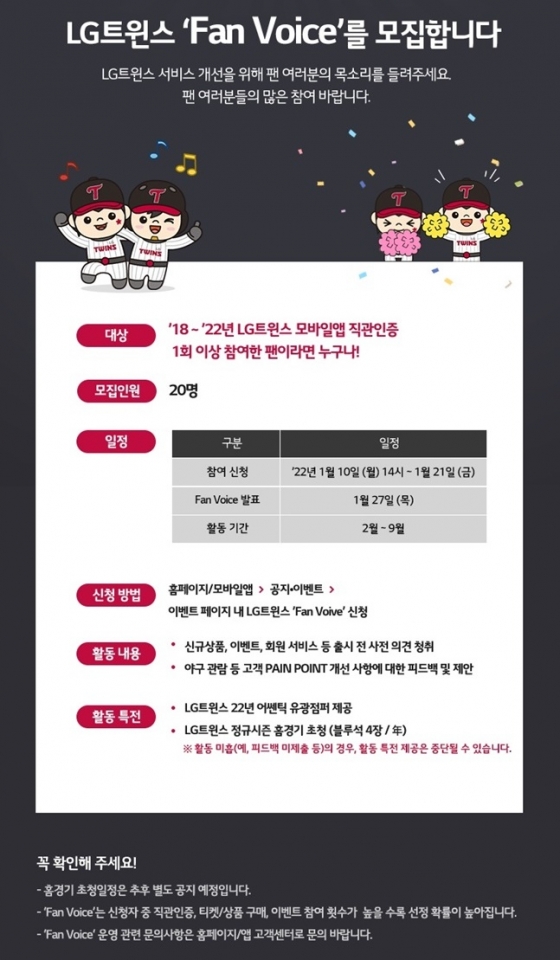 LG, 2022시즌 팬 자문단 '팬 보이스(Fan Voice)' 운영