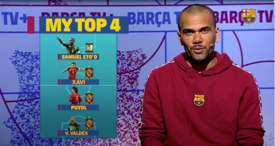 알베스는 4인 드림팀 멤버로 수문장 빅토르 발데스, 수비수 카를레스 푸욜, 미드필더 차비 에르난데스 감독, 공격수 ‘흑표범’ 사무엘 에투를 낙점했다.