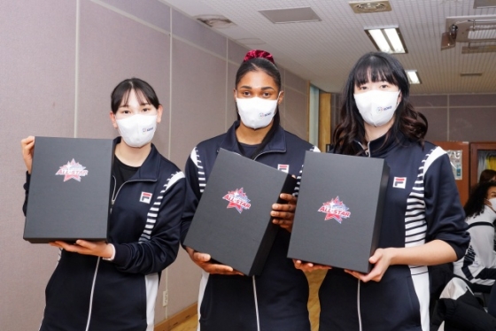 V리그 올스타 선수들이 올스타전을 하루 앞두고 광주 페퍼스타디움 인근 초등학교 유소년팀을 위해 깜짝 선물을 했다. 외국인 선수들도 적극적으로 참여했다.