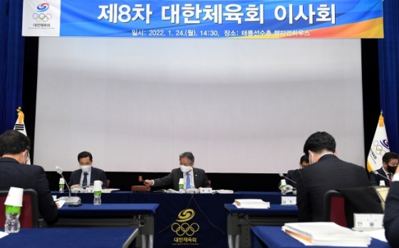 대한체육회는 24일 "태릉선수촌 챔피언하우스에서 제8차 이사회를 개최했다. 이번 이사회에서는 2021년 대한체육회 사업결과 및 결산, 전국생활체육대축전 대회운영 방식 변경, 전국체육대회 시범종목 채택, 신규 회원종목단체 가입 승인, 정관개정 등 5개 규정 개정 등을 의결했다"고 전했다.