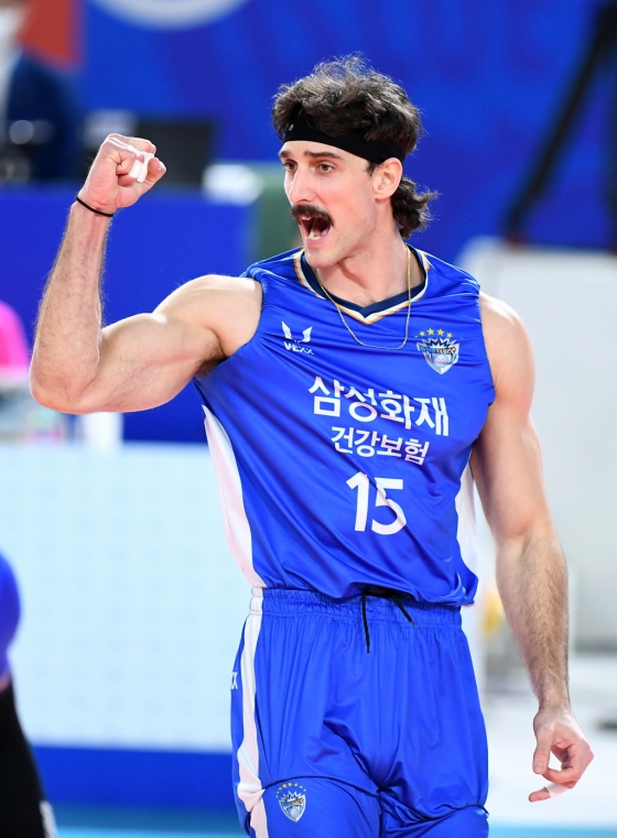 '트리플크라운' 삼성화재 러셀 새 역사, 서브로만 8연속 득점 폭발