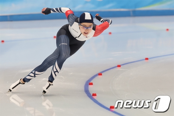 13일 오후 중국 베이징 국립 스피드 스케이팅 경기장에서 열린 스피드 여자 500m 경기에서 김민선이 역주하고 있다. /사진=뉴스1