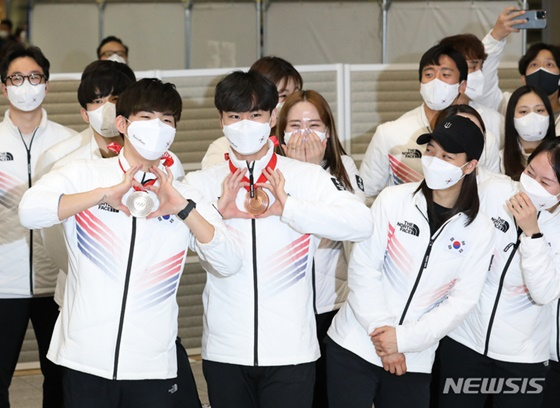 베이징올림픽에서 값진 땀방울을 흘린 한국 선수단이 금의환향했다. 베이징올림픽 일정을 모두 마친 한국 선수단은 지난 21일 오후 인천국제공항을 통해 귀국했다. 쇼트트랙, 피겨스케이팅 등 일부 종목 선수들이 먼저 귀국한 가운데, 이날 이기흥(67) 대한체육회장과 다른 선수단 등 50여 명이 돌아왔다.