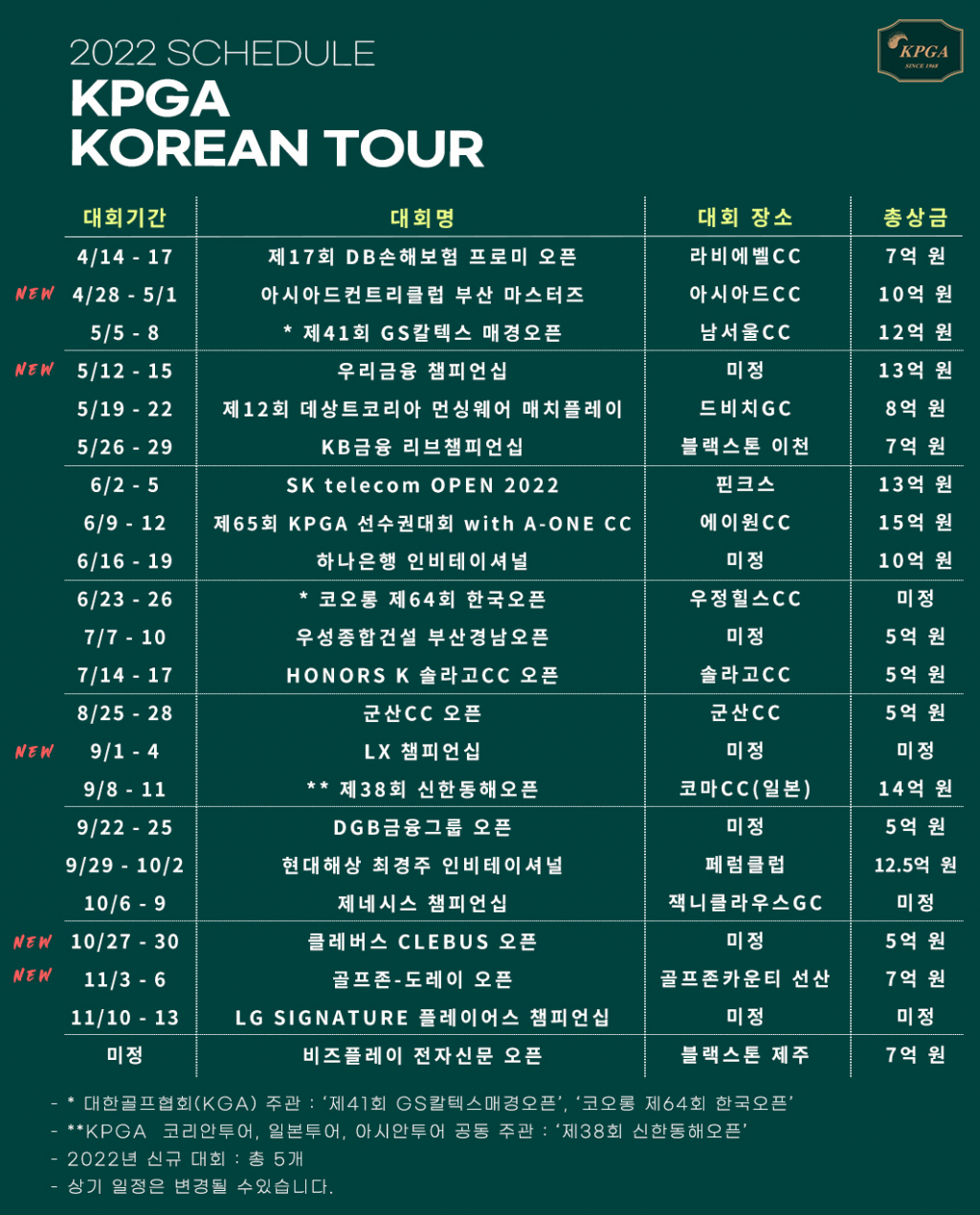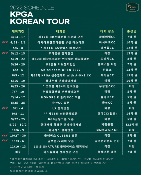 2022 시즌 KPGA 코리안투어 일정이 발표됐다.