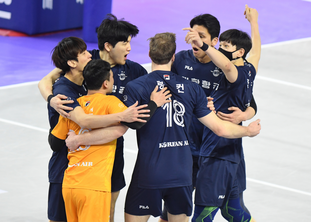 대한항공은 22일 인천 계양체육관에서 열린 도드람 2021~2022 V리그 남자부 6라운드 KB손해보험과 경기서 세트스코어 3-2(21-25, 25-22, 25-20, 29-31, 15-7)로 승리했다. 이로써 대한항공은 선두 자리를 지켰고, 22승 12패(승점65)를 기록했다. 반면 2위 KB손해보험은 19승 15패(승점62)를 마크했다.