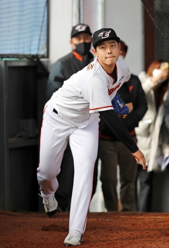 서산에서 총 7차례 불펜 피칭을 소화한 뒤 대전으로 이동했다. 지난 1일 대전 한화생명 이글스파크에서 처음으로 불펜 피칭을 실시했는데, 최고 구속 155km/h를 찍으며 많은 구단 관계자들을 놀라게 했다. 롤모델인 류현진(35·토론토) 앞에서도 떨지 않고 씩씩하게 공을 뿌렸다.