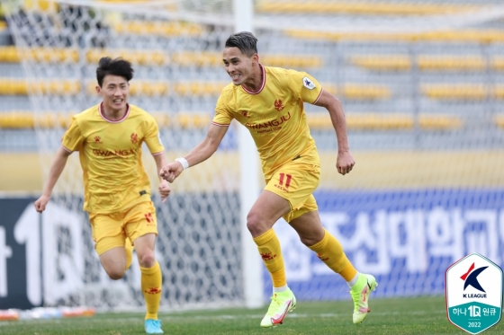 [K리그2 7R] ‘헤이스 결승골’ 광주, 충남아산에 2-1 승 … 홈 4연승 행진